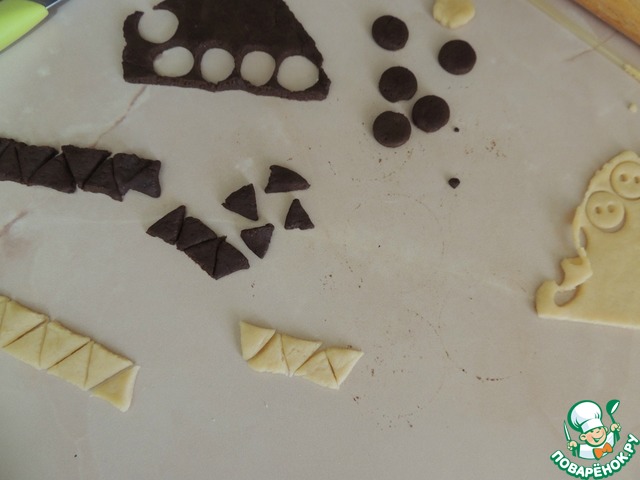 Чтобы в процессе запекания детали не расползлись, прикрепляем к основному кругу взбитым белком.