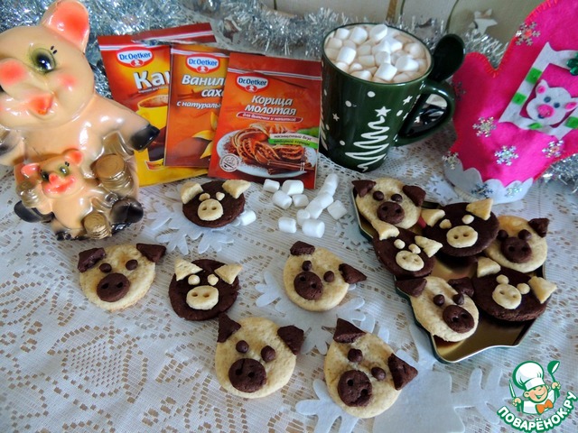 Симпатичные печенья- поросята украсят Ваш праздничный стол и всем поднимут настроение! Приготовьте и Вы и порадуйте своих близких! Прекрасным дополнением к печеньям будет кружка ароматного какао от Dr.Oetker.