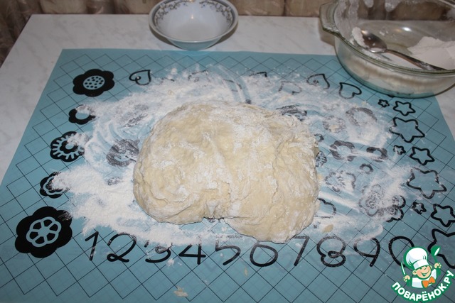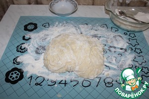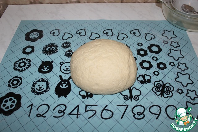 • Готовое тесто выкладываем в чашку смазанную растительным маслом. Прикрываем пленкой. Убираем в теплое место на подъем на 1.5 часа.