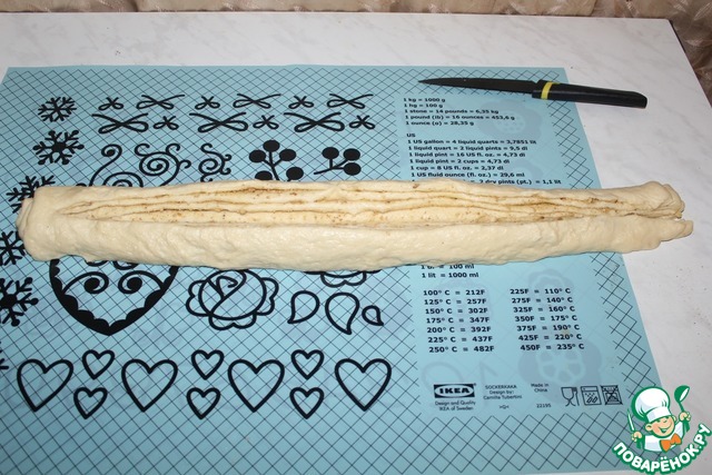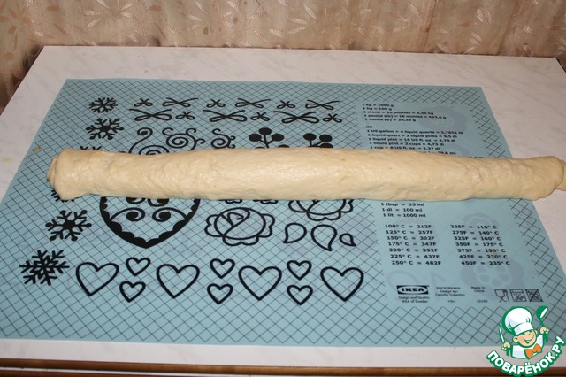 Скатала в тугой рулет и разрезала отступая от края 2 см , посередине один раз. Потом половинки рулета переплела между собой и сформировала калач. Если что не понятно пишите, всегда буду рада вам помочь. Удачной вам выпечки. С Рождеством!!!