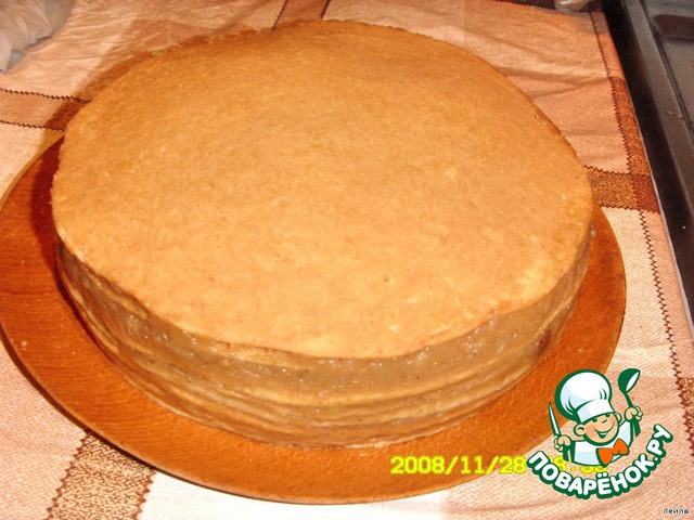 Несколько коржей испеклись, можно спокойно собирать торт. Корж и готовый яблочный "крем"