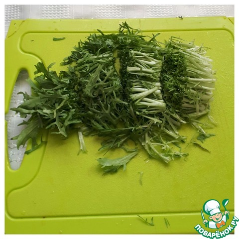 У салата фризе (одуванчик) отрезаем белую часть.