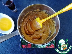 Теперь смело выкладываем тесто в форму, предварительно добавив в него отжатую от "Амаретто" клюкву. "Амаретто" не утилизируем, хоть и очень хочется! ;) Оно нам ещё пригодится для карамели!
