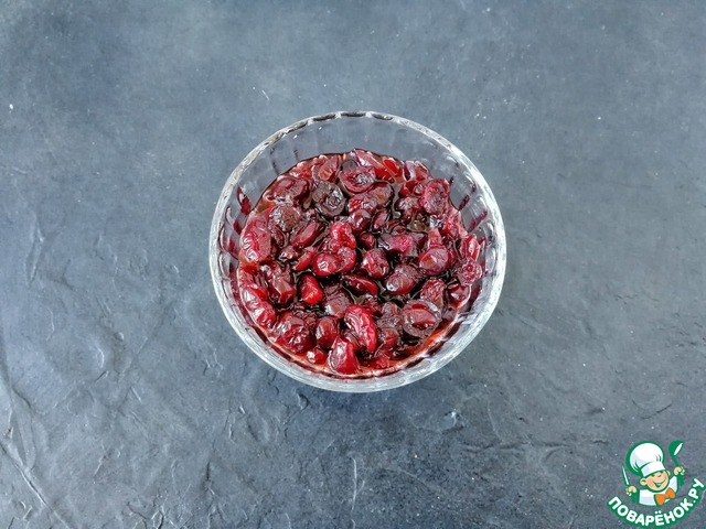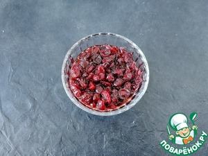 Сушеную клюкву я замочила в "Амаретто" за сутки до приготовления. Конечно, это необязательно, но так вкуснее!