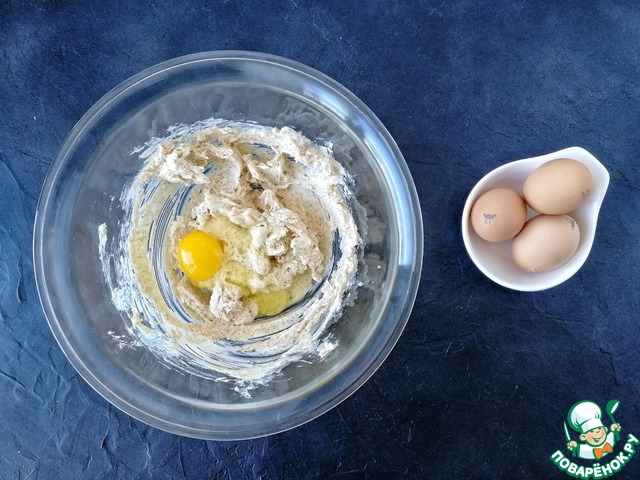 Теперь вводим яйца по одному, каждый раз хорошо и тщательно перемешивая.