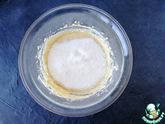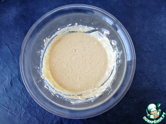 Получается вот такое достаточно жидкое тесто, примерно, как на шарлотку.