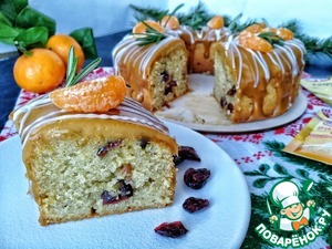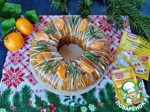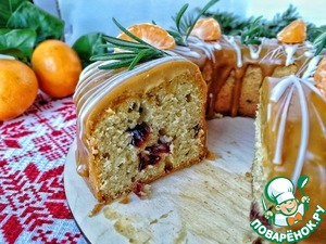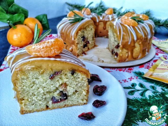 Сверху я украсила кекс белой глазурью, дольками мандарина и веточками розмарина.
