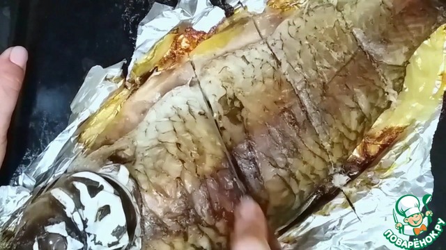• Этим соусом натрите карпа со всех сторон и внутри.