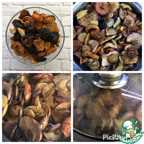 Сухофрукты промыть. Вскипятить в кастрюле воду и закинуть туда сухофрукты. Прокипятить минут 10, накрыть крышкой и оставить настаиваться около часа.