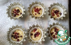 Или, как я, выложить по столовой ложке теста в формочки для кексов, затем клюкву,