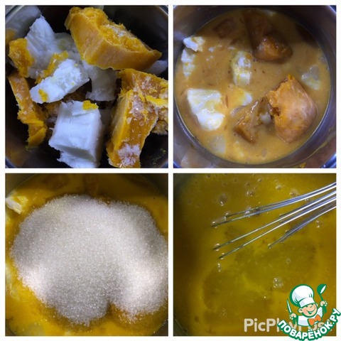 Компоте из пюре маракуйи, манго и кокоса. Этот шаг можно пропустить - у меня разрез торта без этого слоя, т. к. изначально я его именно так и готовила. Но на Новый Год я решила своих побаловать еще больше и добавила экзотики в торт. Однако, разреза торта с этим слоем я почему то не нашла, то ли в новогодней суматохе вообще забыла сделать, то ли пропустила этот кадр. Но, решила этот шаг вставить в рецепт, т. к. очень уж дополняет этот слой и без того вкусный торт.