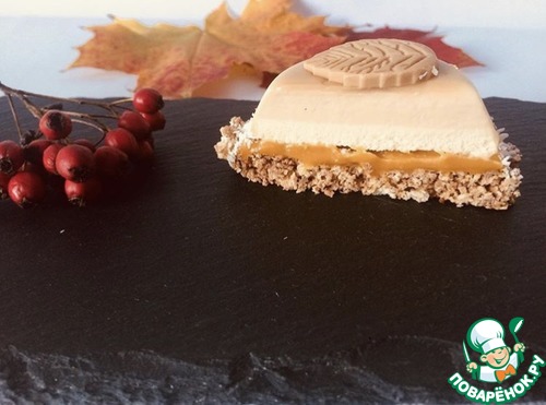 Покрываем мусс глазурью и аккуратно переносим на кранч с карамелью.
