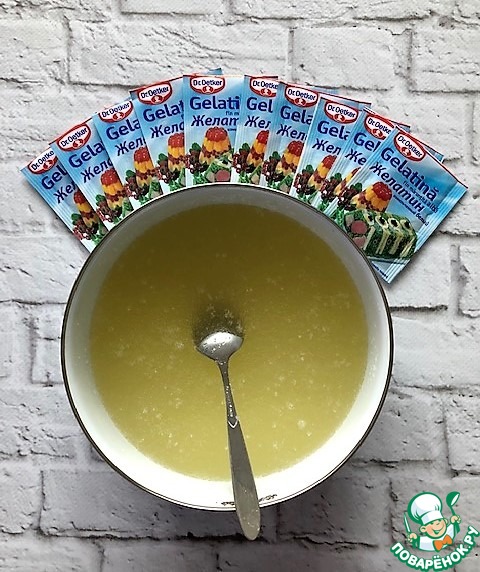 - Желатин (90 г желатиновой массы Dr.Oetker) — 15 г