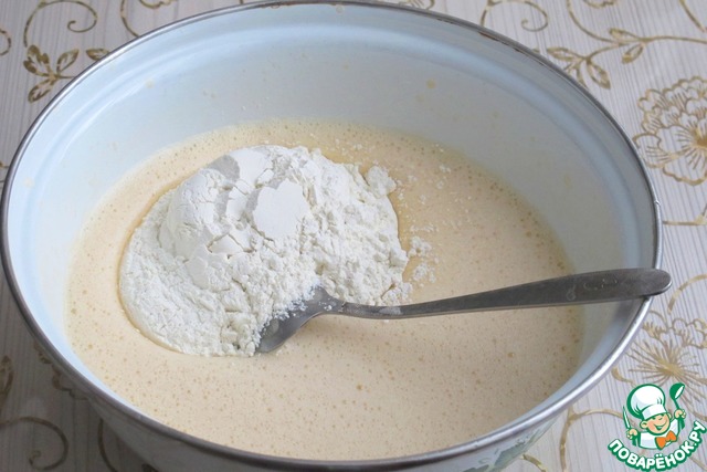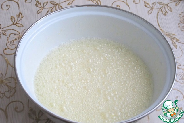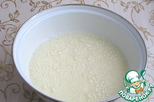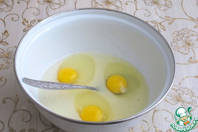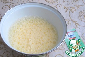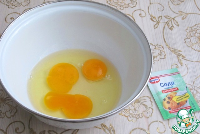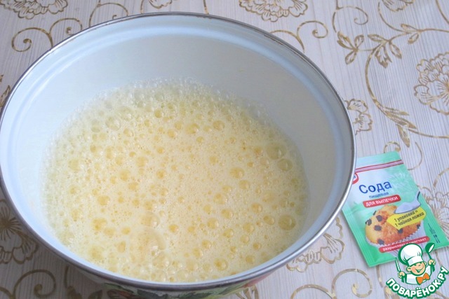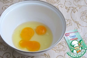 Взбить яйца в легкую пену. Добавить соду для выпечки (1,5 ч. ложки).