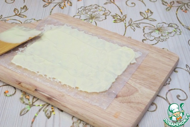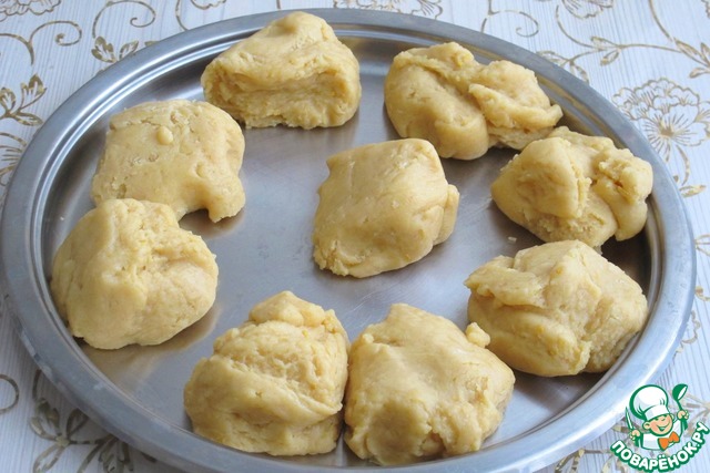 Готовое тесто разделить на 9 равных кусочков, примерно по 130 гр. каждый. Накрыть пищевой пленкой, оставить на 30 мин.