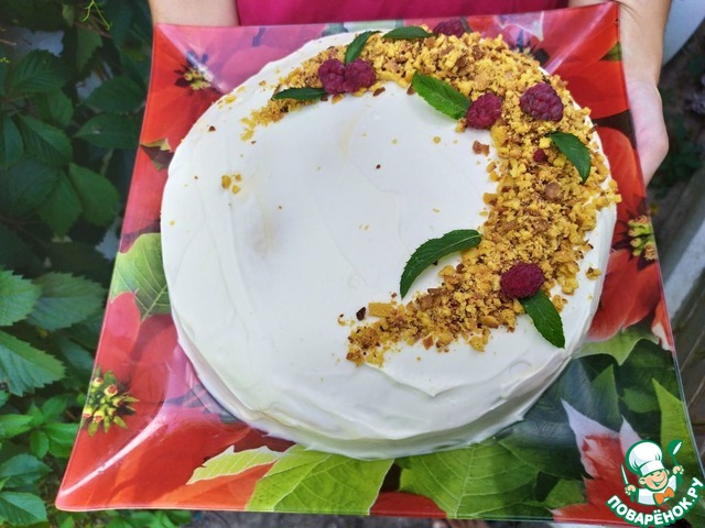 Торт поместить в холодильник на ночь для пропитки коржей.
