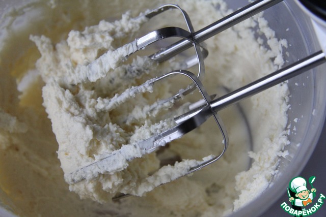 Белки взбить с щепоткой соли до устойчивых пиков. Добавить к основной массе и аккуратно перемешать.