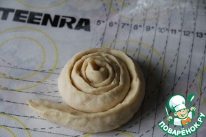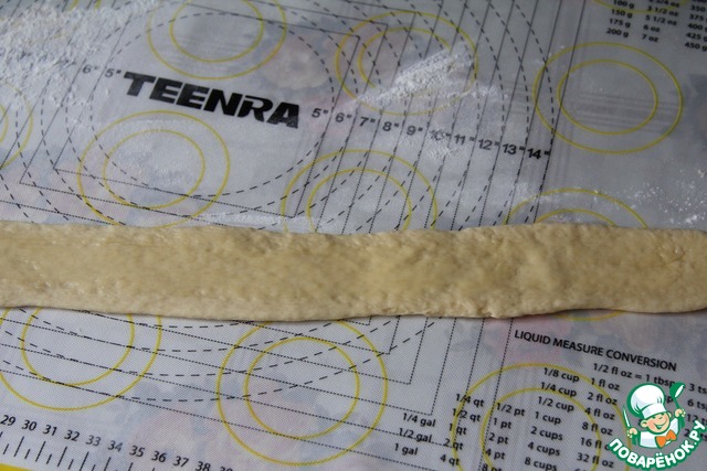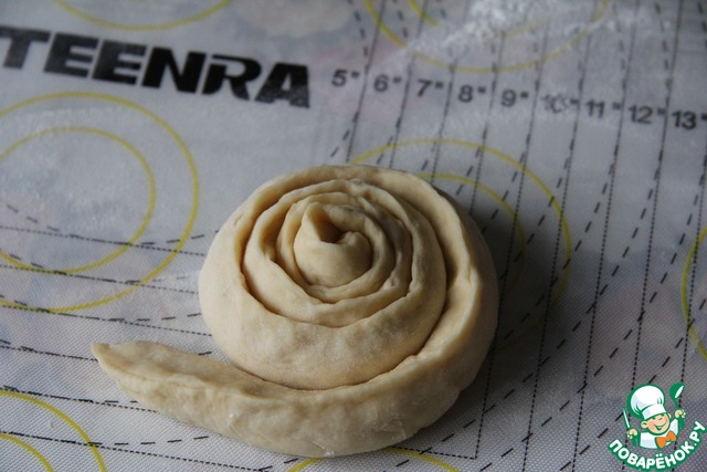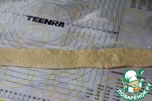 Из каждого сделать жгутик и раскатать. Смазать растопленным маслом.