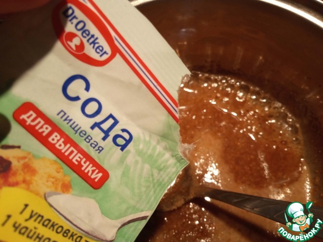 После закипания добавляем два пакетика соды Dr. Oetker.