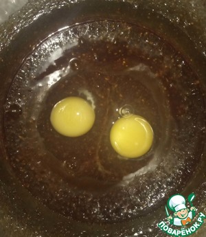 В остывшую смесь добавляем яйца и все хорошо перемешиваем.