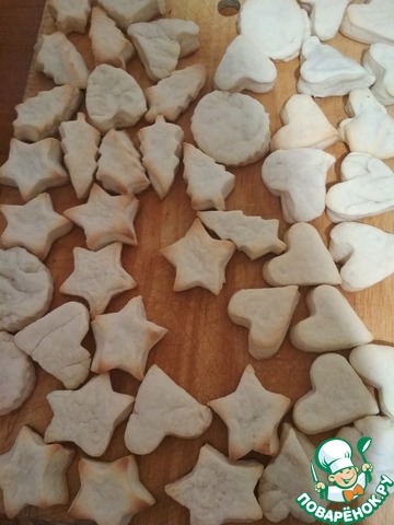 Тесто достать, раскатать в пласт толщиной в 3-5мм, вырезать печенье любой формы: елочки, звездочки, сердечки и т. д. Выпекать в разогретой до 180 градусов духовке около 15 минут. Остывшее печенье покрыть глазурью.