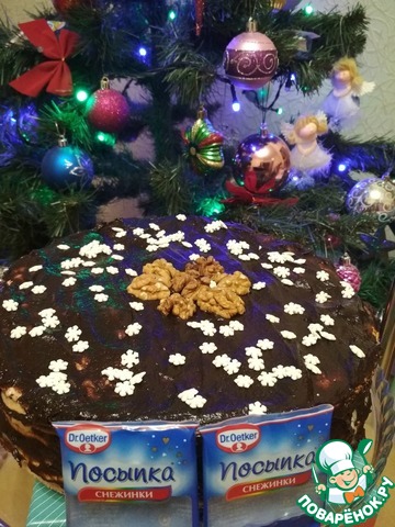 Чтобы приготовить глазурь, необходимо в кастрюльку положить 3ст. ложки сметаны, 5ст. ложек какао, 1/2 стакана сахара, 50 гр сливочного масла, поставить на медленный огонь, перемешать, дать закипеть и горячей полить верх торта и промазать бока торта. Украсить посыпкой, орехами. Дать пропитаться (готовлю вечером, ставлю на ночь в холодильник).