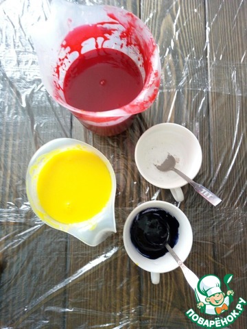 - Краситель пищевой (Для гляссажа красители: гелевый водорастворимый вишневый (опционально); гелевый водорастворимый желтый (опционально). Для наппажа красители: водорастворимый черный (опционально); водорастворимый белый (опционально))