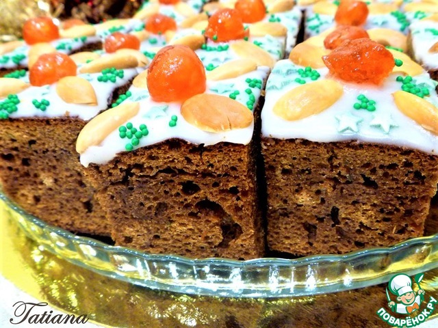 В Рождественские, праздничные дни всегда хочется приготовить множество вкусной и ароматной выпечки. Что бы в доме "стоял"пряный и праздничный аромат завораживающих специй! Одним из таких рецептов является коврижка. Коврижка-большой медовый и мягкий пряник, или пряный и медовый праздничный хлеб! От коврижки не ждут воздушности как от кексов, мякиш у коврижки более плотный. Поэтому и едят коврижку универсально, если не украшать верх коврижки сладким декором, то к коврижке можно предложить и мягкие сыры, и даже паштет... "моя" коврижка предлагается к десертному угощению, и украшение у нее будет соответствующее... А еще коврижка хороша тем, что испечь ее можно заранее, коврижка замечательно хранится в холодильнике (в герметичной упаковке)несколько дней.