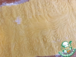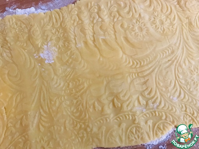 На сайте есть имбирное печенье. Я предлагаю обычное печенье. Готовить быстро и легко. Но самое главное очень хотелось использовать узорчатую скалку, которую мне подарила Поваренок - Пандочка на Новый Год. Я долго искала рецепт с узорчатой скалкой, нашла рецепт в интернете.