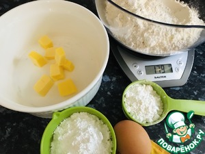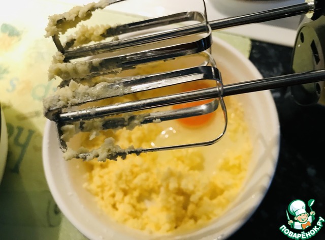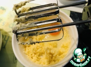 Масло сливочное порезать на кусочки, соединить с сахарной пудрой до крошки (в делала миксером на низкой скорости )
