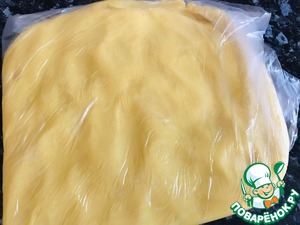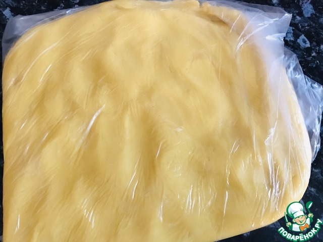 Тесто положить в пакет, раплющить его руками в пакете. Убрать в холодильник на 30 минут.