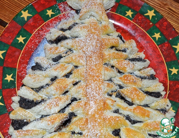 Извлекаем тесто, отрезаем лишние уголочки, формируя ёлочку.
