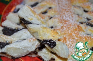 Накладываем второй слой теста и разрезаем по бокам наши веточки.