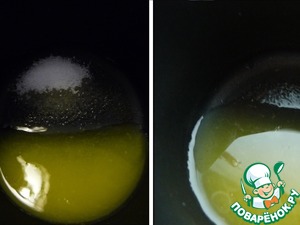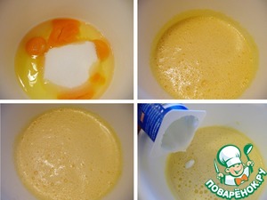 Взбить яйца с сахаром до пышного состояния (примерно2мин.).