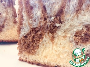 • А можно просто испечь бриоши, сворачивая оба вида теста в жгуты, укладывая в кольца, смазанные растительным маслом.