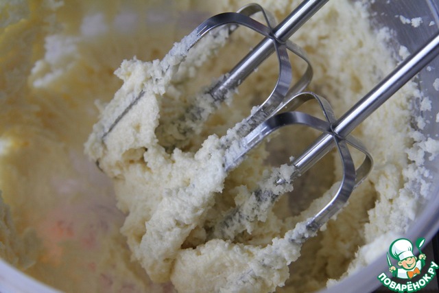 Взбить масло комнатной температуры с сахаром и солью до пышного состояния.