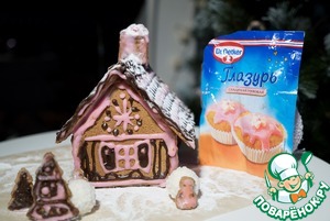 В Новому году сынок решил приготовить пряничный домик быстрого и не сложного приготовления. А также поучаствовать в конкурс "Новый год с Dr. Oetker" и На праздничный стол: Новый год. Домик красиво вписался в нашу композицию к новогодней елочке в розовом цвете, вкусовыми качествами он нас радовал уже на Рождество. По вкусу он получился не приторным, в меру твердым. Гости остались довольны.