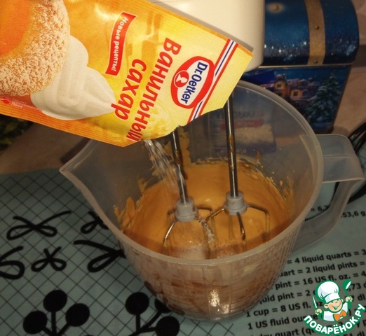 Добавим в крем ванильный сахар Dr. Oetker, взобьем, чтобы не чувствовались крупинки сахара.
