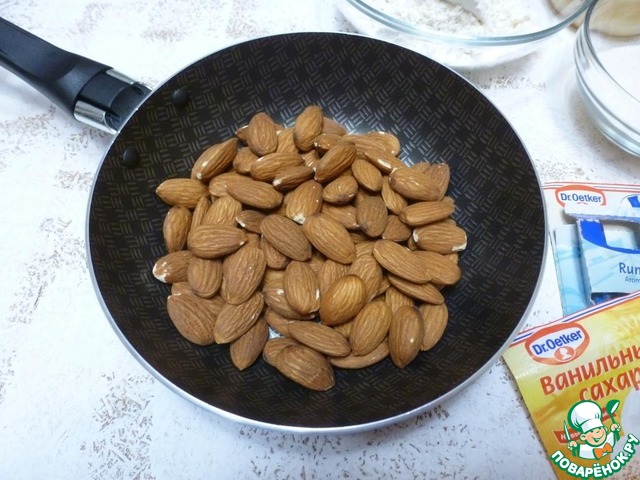 Миндаль подсушить на сухой сковороде.