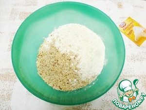Смешать муку, сахар, и измельченный миндаль. Добавить соль, ароматизатор Ром Dr. Oetker и ванильный сахар Dr. Oetker.