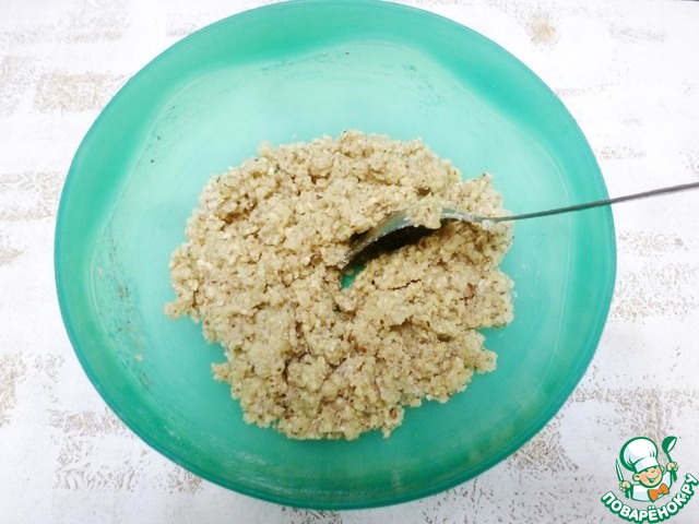 Тщательно размешать. Сначала тесто будет крошиться и не собираться, так и должно быть. Месить надо рукой 3-4 минуты. потом тесто станет вязким и его можно будет собрать в шар, но все равно оно будет рассыпчатым. Отправить тесто в холодильник охладится на 30 минут. С холодным тестом работать лучше, оно лучше раскатывается и вырезать фигурки из него легче.
