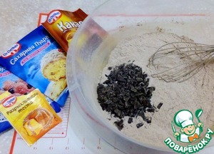 Добавить к сухой смеси рубленный шоколад или если есть - шоколадные капли, перемешать.