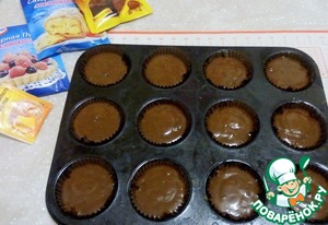 В форму вставить бумажные формочки, разложить тесто. Поставить в горячую духовку 160°C на 22-24 минуты. Следить, проверяя деревянной шпажкой.