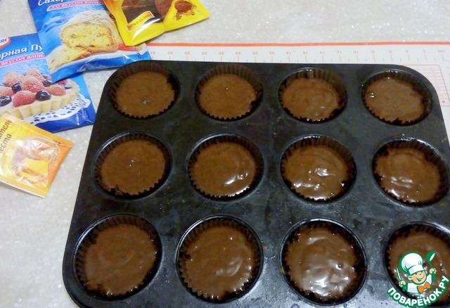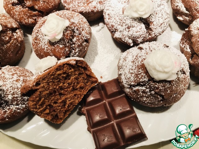 Рецепт «Мега-шоколадные капкейки с кусочками шоколада»: