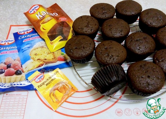 Предлагаю вам потрясающие капкейки. Очень вкусное, нежное, слегка влажное тесто с добавлением какао-порошка Dr. Oetker, аромат растворимого кофе и кусочки шоколада - просто божественное сочетание. Это мега-шоколадные капкейки, в которые влюбишься с первого кусочка. Их очень удобно подавать к праздничному столу в бумажных формочках, даже удобнее, чем торт. Всем, кто любит шоколадный вкус, советую попробовать.