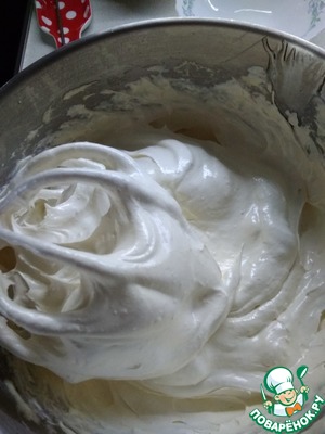 После того, как весь сироп будет влит, взбивать ещё 30-40 секунд. -