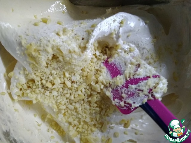 Можно по желанию добавить ещё орехи ( сухофрукты, шоколад). У меня был абрикосовый зефир, поэтому я добавила 50гр миндаля.