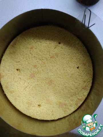 Для коржа смешать все ингредиенты, выложить в форму ( у меня 18 см) и выпекать при 190С 10 минут