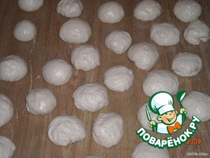 От теста отщипываем маленькие кусочки, формуем из них маленькие булочки