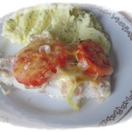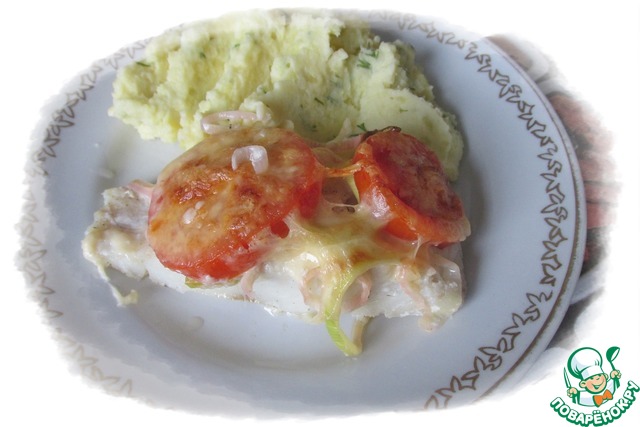 Пикша с помидорами и сыром